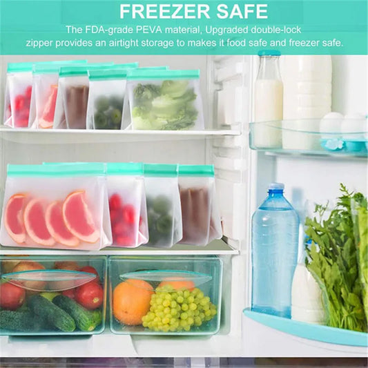 EcoFresh Reusable Food Storage Bags – BPA-Free, PEVA, & Leakproof | Sustainable Alternative to Plastic Bags